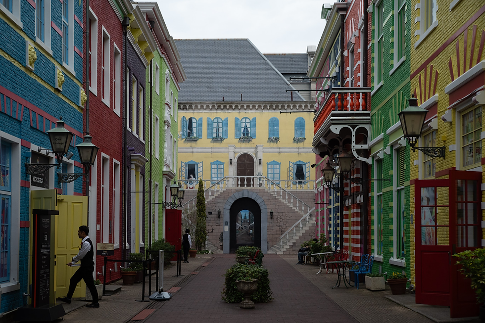 我到園區時已是下午,人潮密度比我想像更誇張。那種感覺不是「熱鬧」,而是「每走幾步都要跟著隊伍流動」。這時我做的第一個正確選擇,是去搭 運河遊艇(Canal Cruiser)。原因很簡單:當你從陸路切換到水路,你的視角會變乾淨,節奏會慢下來。黃昏時段尤其舒服,夕陽灑在水面與歐式建築上,會讓你從「被人潮推著走」回到「我在旅行」。